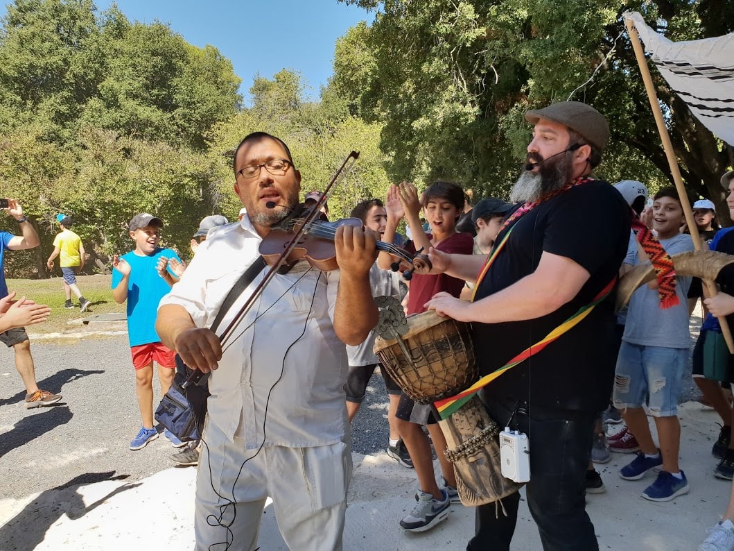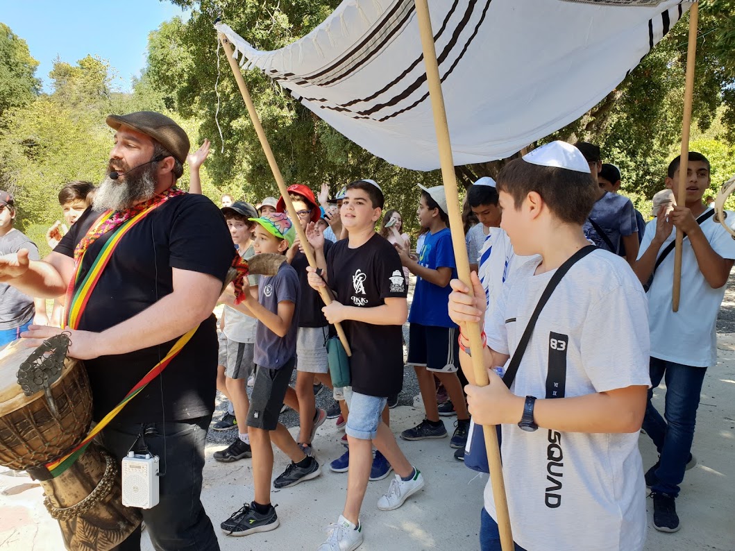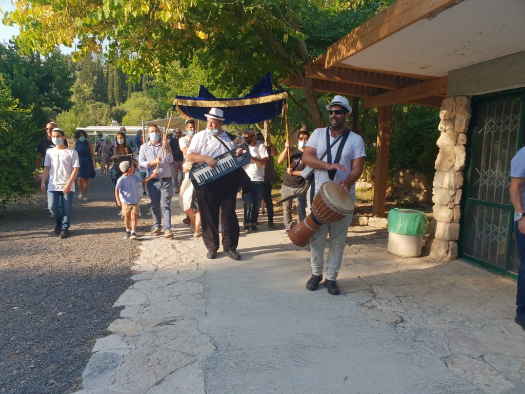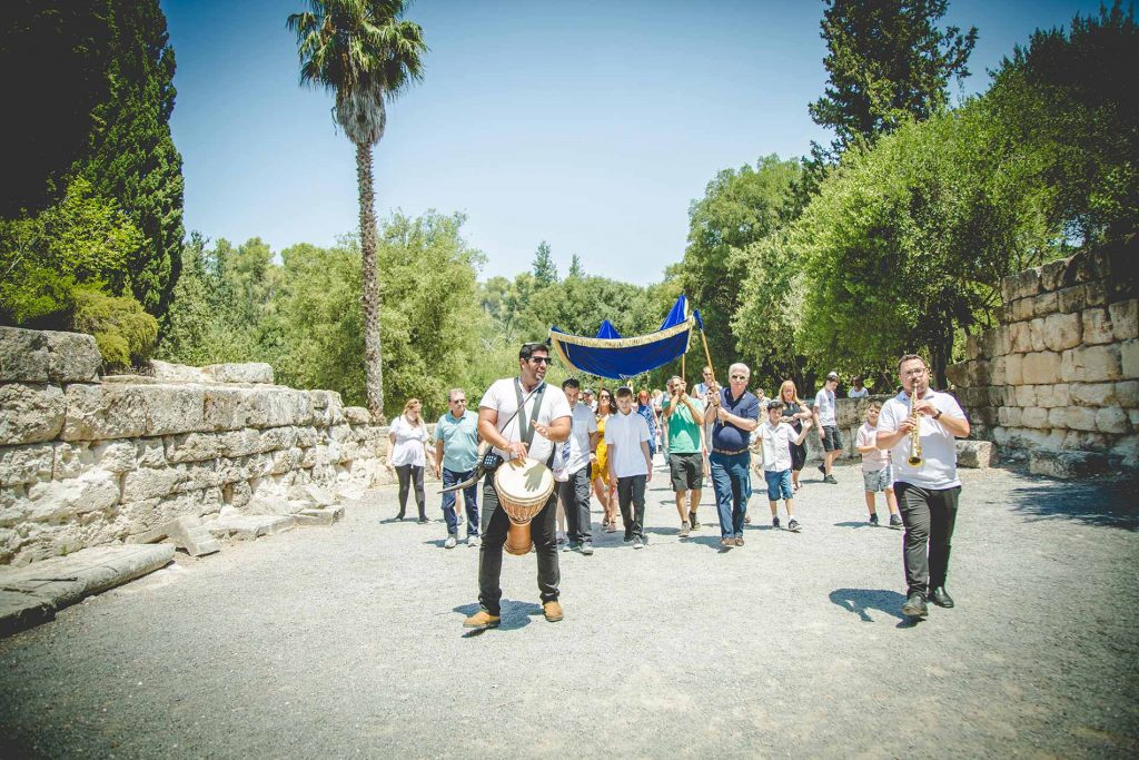 בתהלוכה עם תופים ושופרות צועדים כולם לעבר המערה.