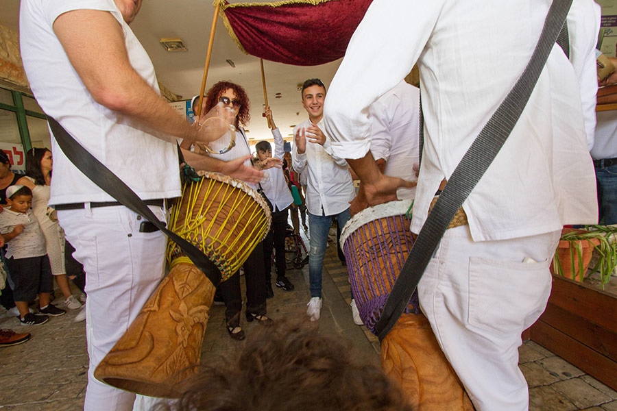 *עליה לתורה לבנים באווירה מרגשת נכנס עם שופרות ותופים.