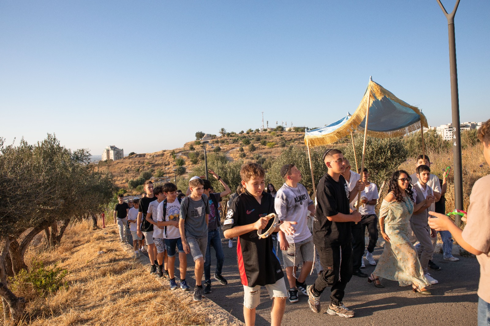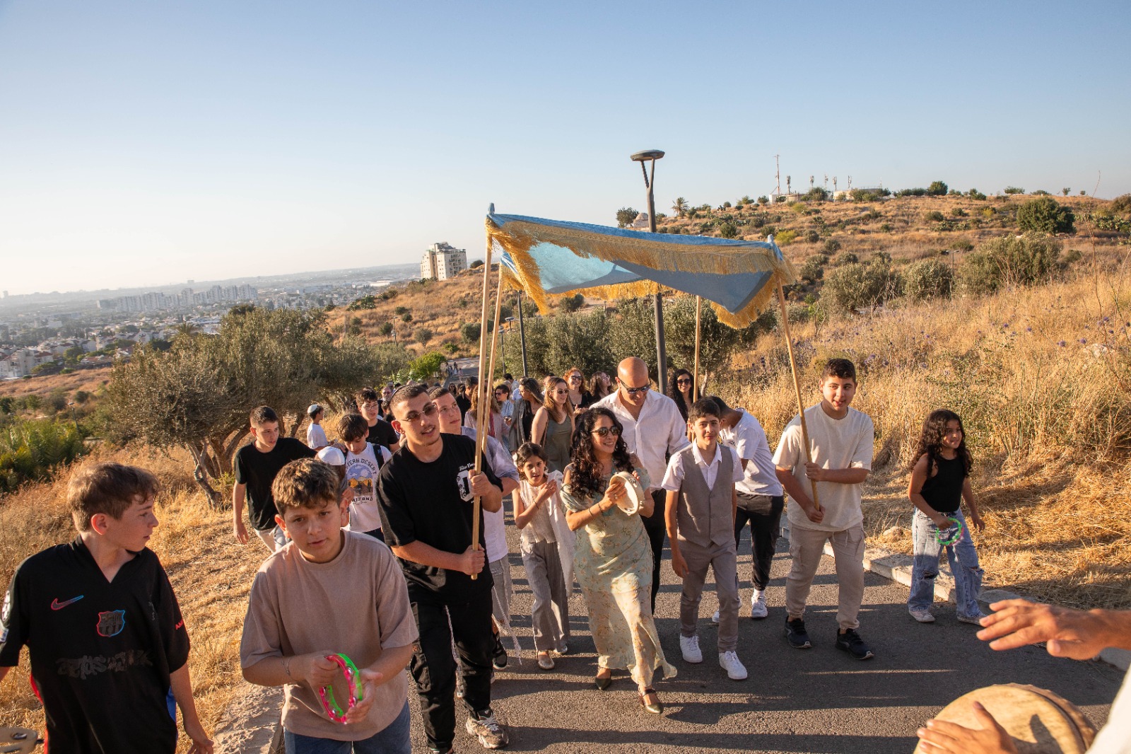 בתהלוכה עם תופים ושופרות צועדים כולם לעבר המצודה,