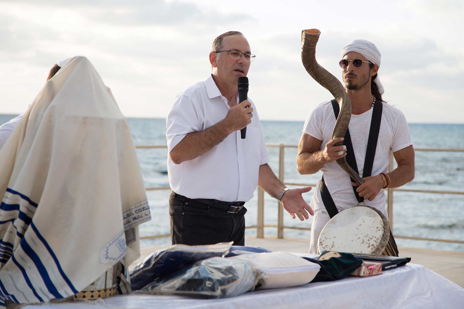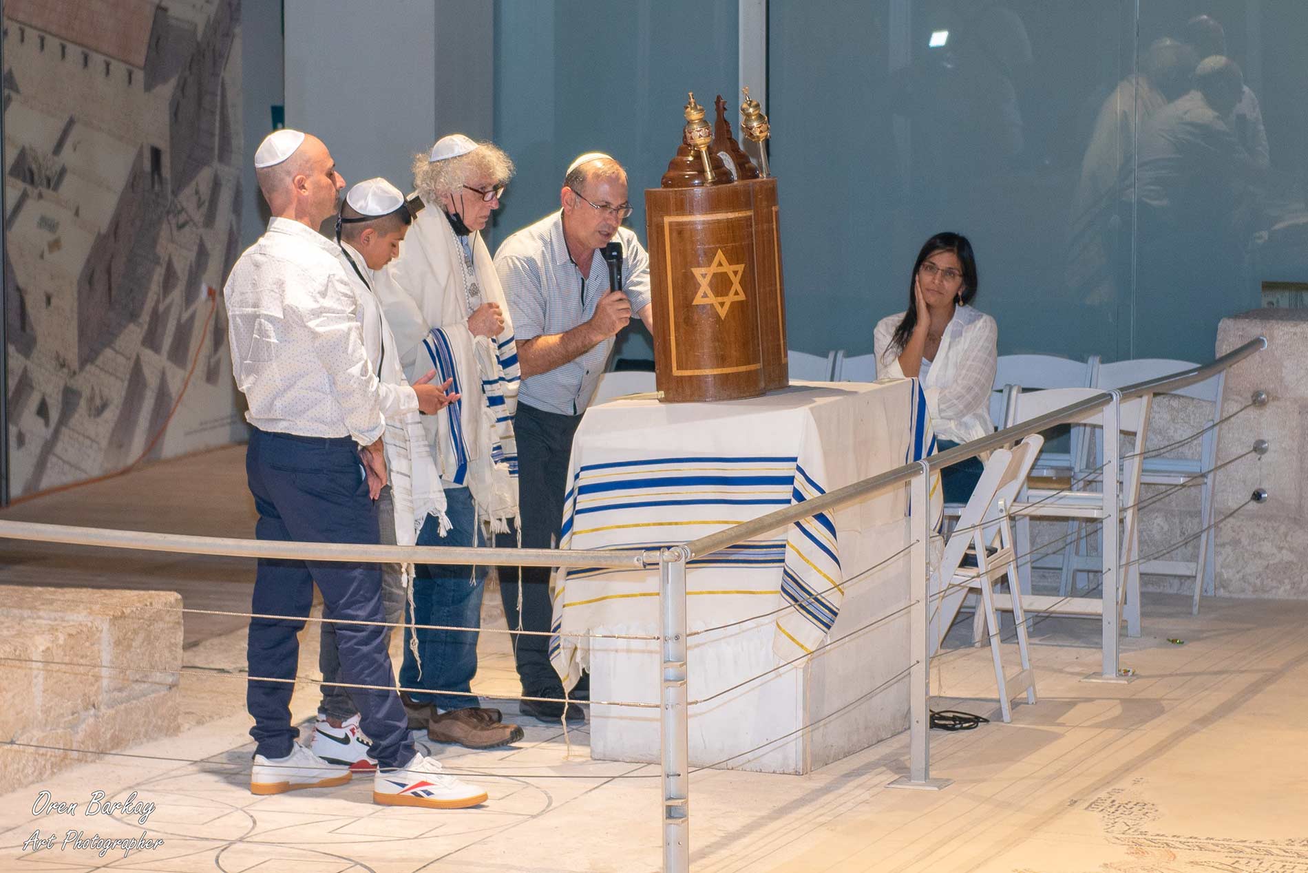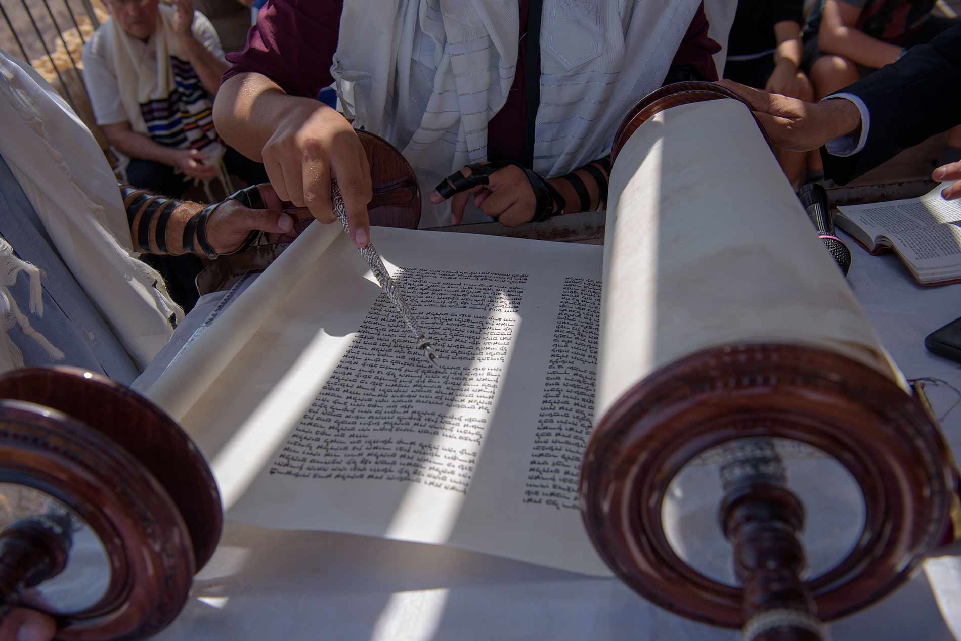 קורא את הפרשה בעזרת עורך טקס שמלווה את התפילה, שר ומסביר על הטקס.