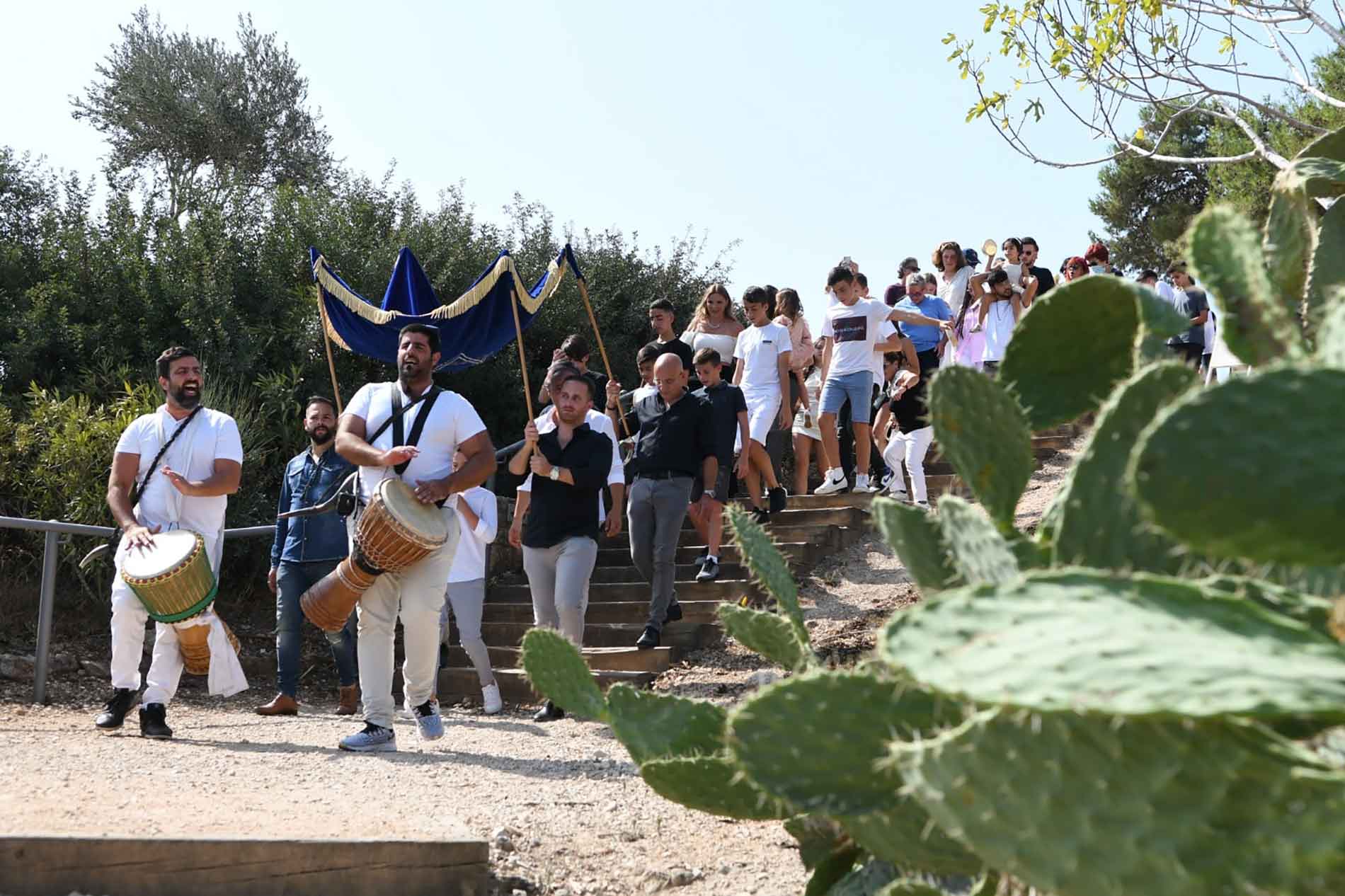 תקיעה בשופרות ותחילת תהלוכה בשילוב הנגנים- תופים, קלרינט או גיטרה.