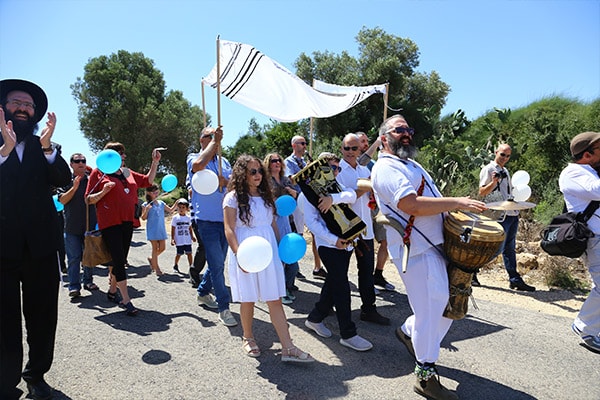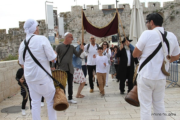 Arriving at the site, we parade in a joyous procession to the ceremony singing, dancing, and blowing the Shofars to open the gates of heaven; the celebrating child under the Chuppah.